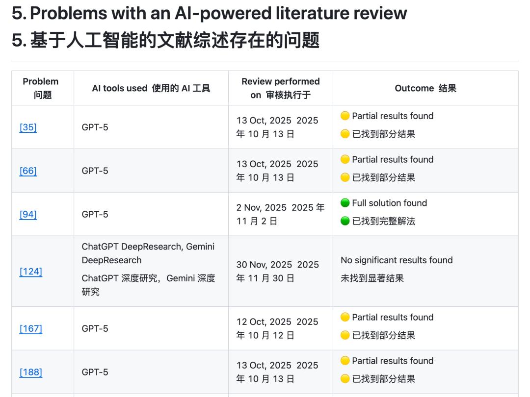 很多题目「是否未解」本身就不确定:网站上不少问题缺少系统文献回顾,因此「Open」(未解)这个标签往往只是暂定。AI解出一题后,大家往往很快发现——原来文献里早有人解过(可能方法略不同)。这会让「AI首解」的叙事非常容易翻车。