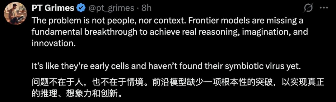 也可能由于前沿模型在推理和创新上缺乏根本性的突破。