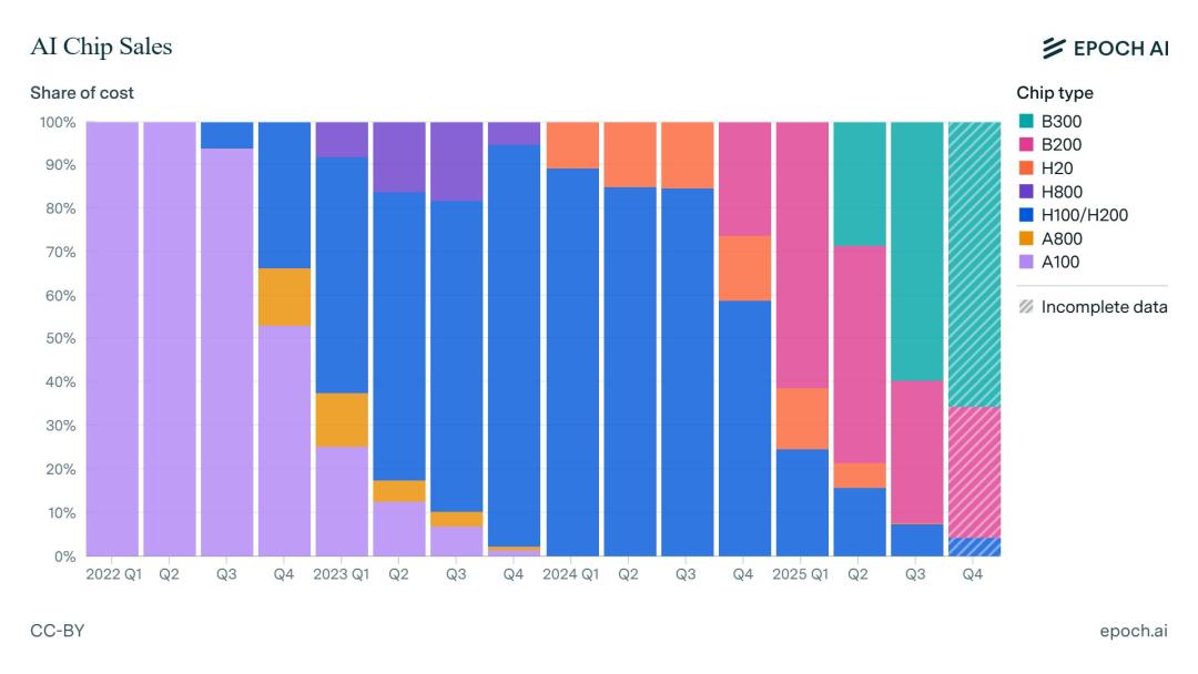 此外,Epoch AI综合了财报、公司公告以及各路分析师和媒体的报道,估算出了芯片层面真金白银的流向。