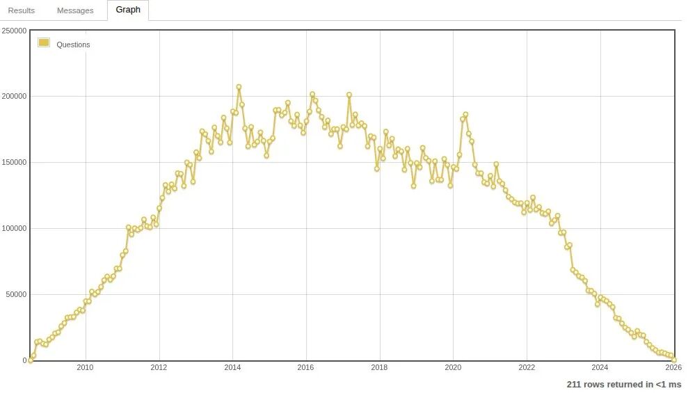 而对于Stack Overflow,这一衰败趋势也正在逐渐显现。