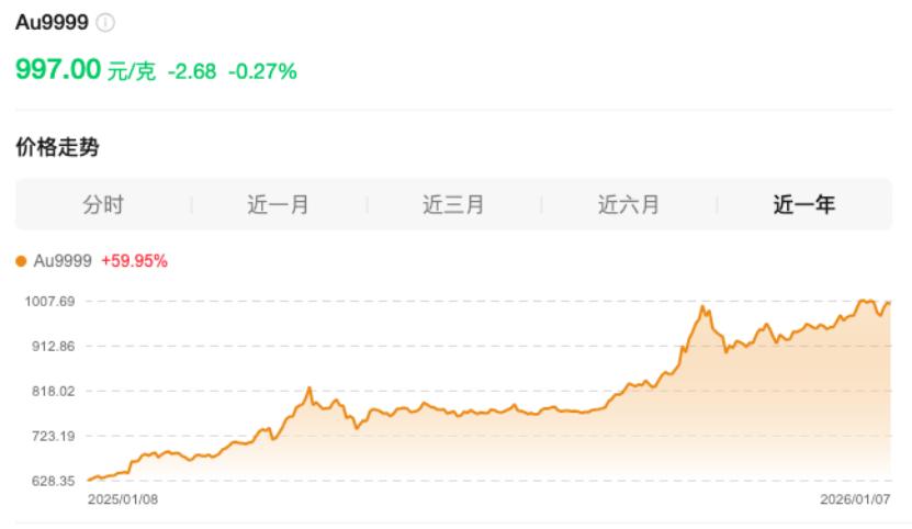 一年内黄金价格从600元区间涨超1000元。(图/腾讯理财通)
