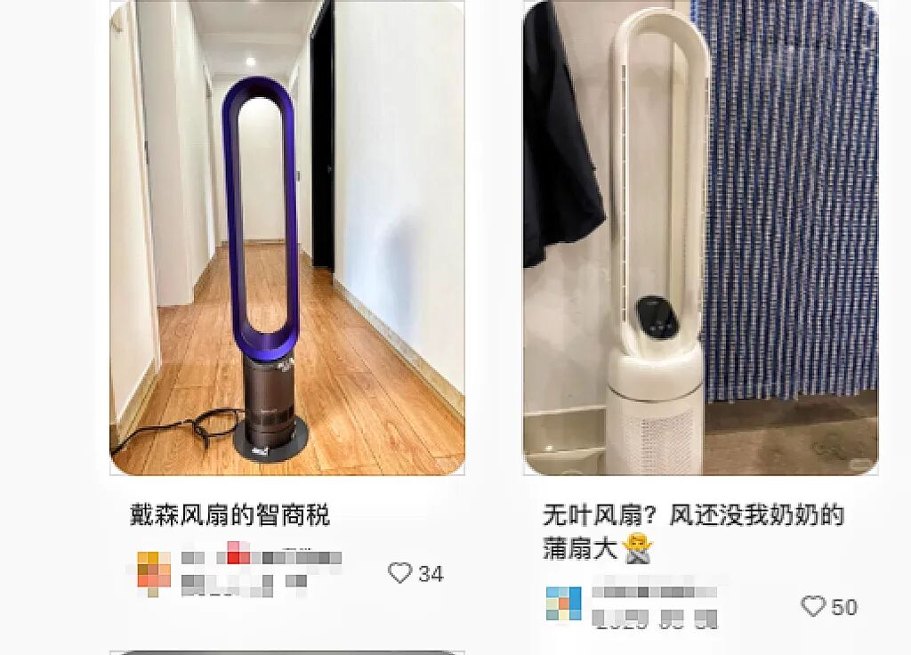 对无叶风扇的吐槽也层出不穷。(图/社交媒体截图)