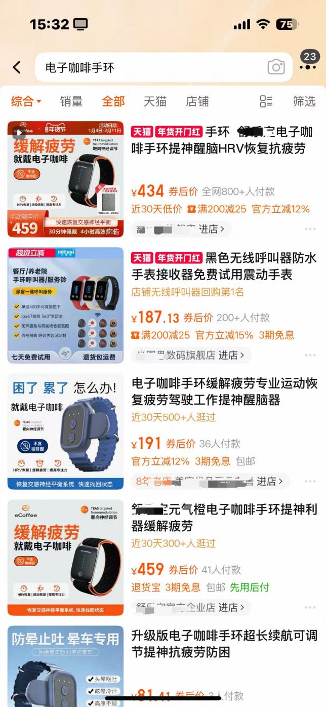 电子咖啡手环售价不菲。(图/电商平台截图)