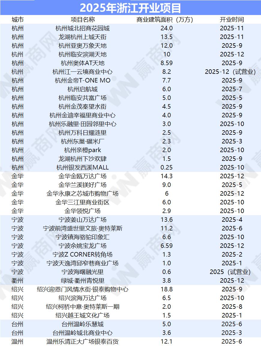 既有覆盖广域的大型综合体,也有服务周边的中小型生活枢纽,这种“大中小结合、分层定位”的体量格局,表明浙江商业正进入精准化、网格化的发展阶段。