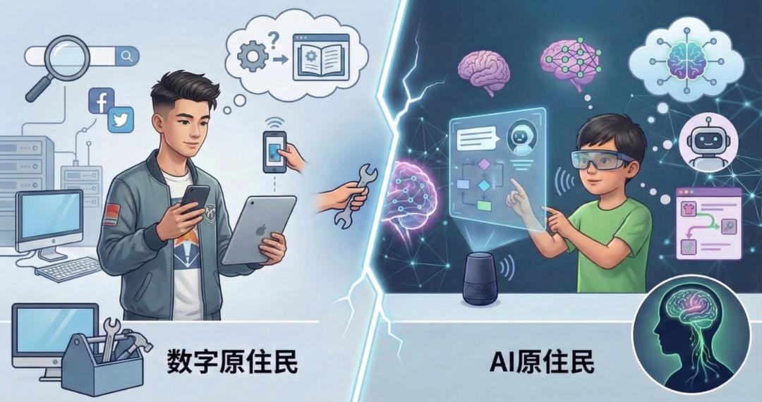 数字原住民和 AI 原住民的对比|图片来源:nanobanana