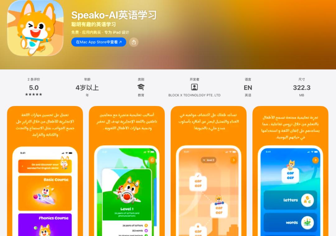 多知观察到,在流利说少儿英语的全球化布局方面,其以一款名为“Speako”的出海产品挺进阿拉伯市场。
