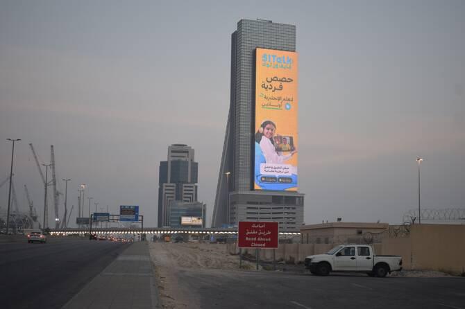 (51Talk在沙特三城投放的户外广告,宣传语为“自信始于语言”,)