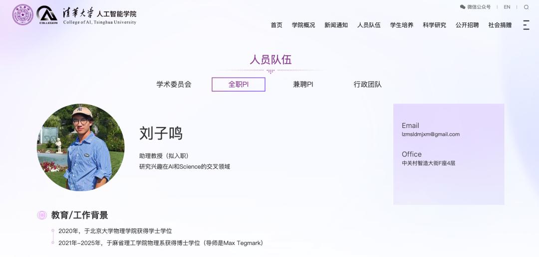 本科毕业后,刘子鸣赴MIT攻读物理博士学位,师从物理学家Max Tegmark——这位物理学教授最初是一名宇宙学家,后将研究重心转向了人工智能。