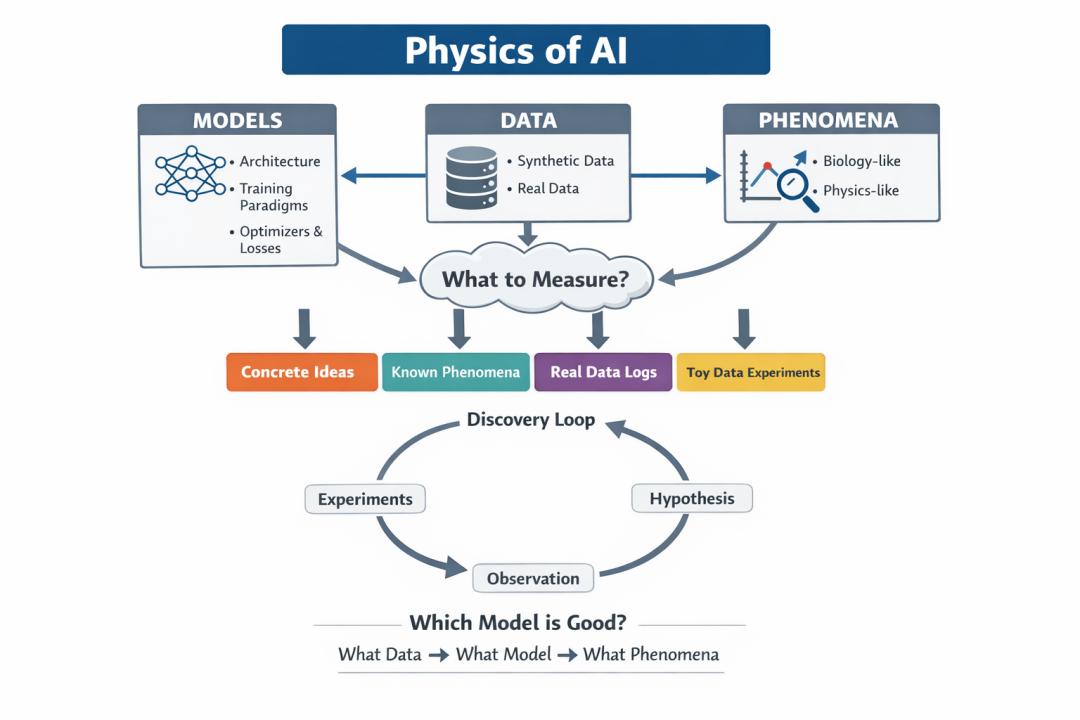 他现在每天更新的博客,名为“physics of AI”,意为用研究物理学的方式来研究AI,旨在回答:什么样的模型,在什么样的数据上,展现出什么样的现象。