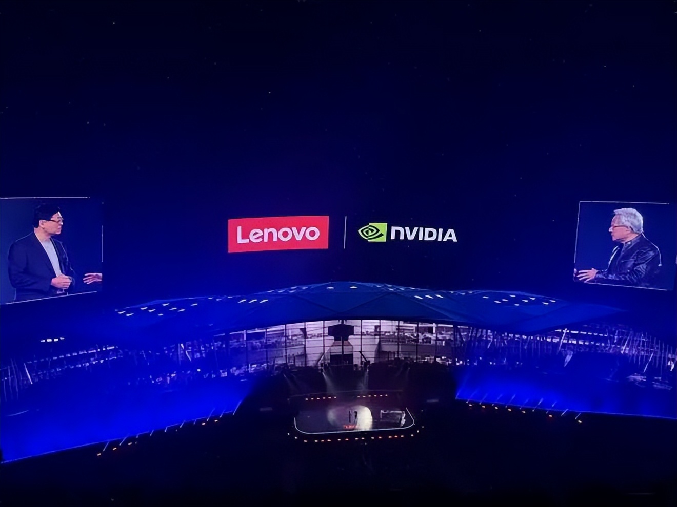 当联想介绍等新品时,轮番站在台上的嘉宾堪称 IT 半导体界的“总统山”:英伟达的黄仁勋、AMD 的苏姿丰、高通的 Cristiano Amon 和英特尔陈立武,四巨头悉数到场。