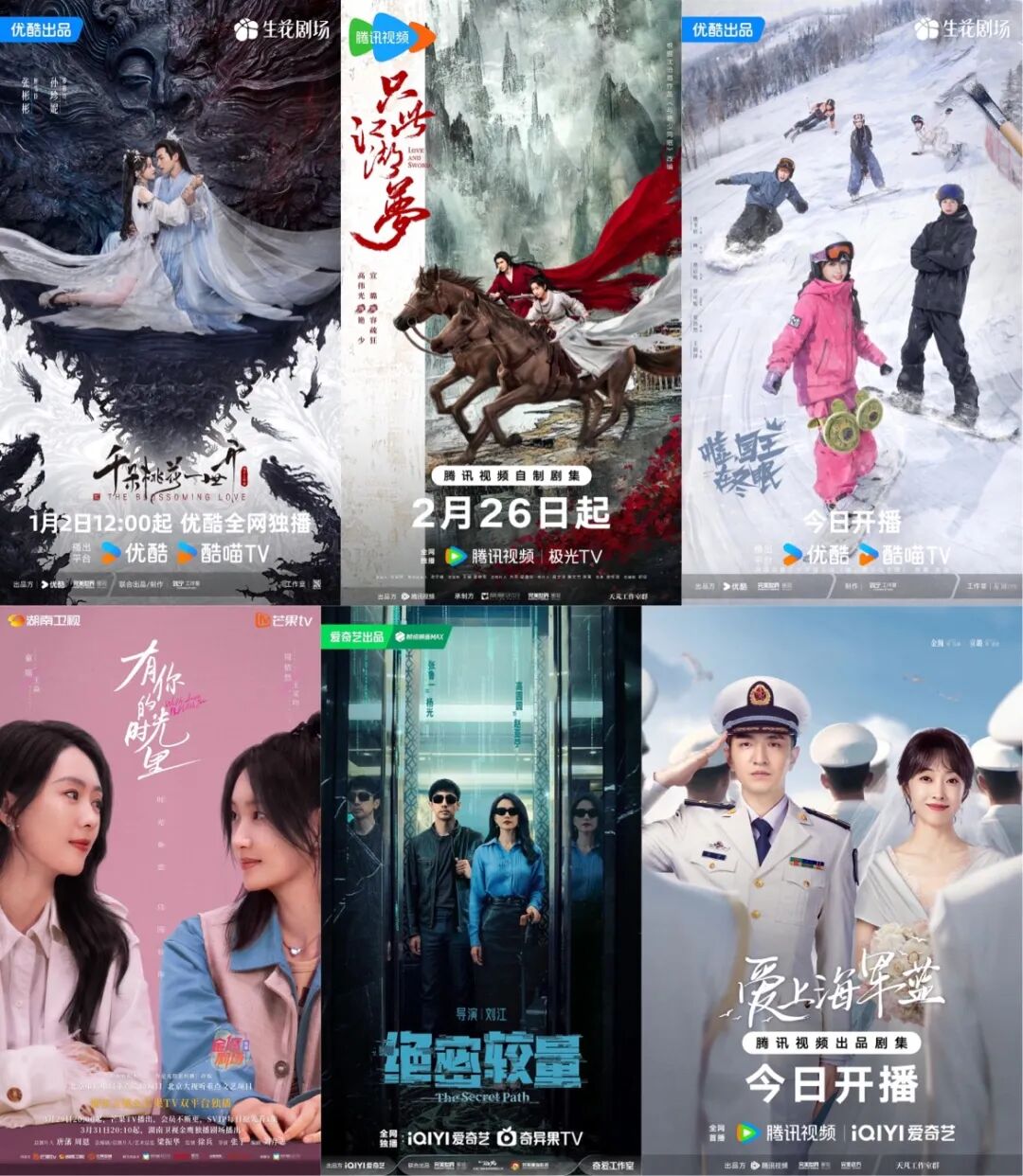 2025年完美世界影视在长剧业务方面:古装仙侠剧《千朵桃花一世开》于1月10日上线优酷;古装爱情轻喜武侠剧《只此江湖梦》于2月26日上线腾讯视频;爱情偶像剧《嘘,国王在冬眠》于3月11日上线优酷;都市情感剧《有你的时光里》3月29日在芒果TV开播,3月31日湖南卫视上星播出;现代国安剧《绝密较量》于4月28日在央视一套黄金档、爱奇艺播出;军旅情感剧《爱上海军蓝》7月2日在腾讯视频、爱奇艺播出。