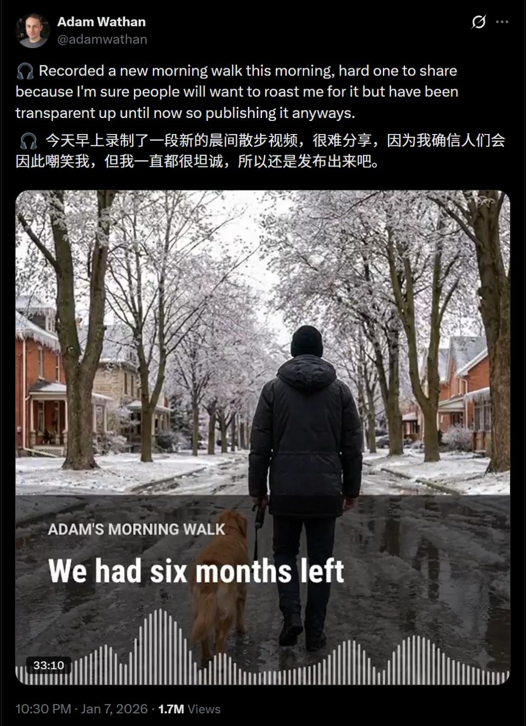 绝望至极的CEO,录制了一段自己的晨间散步视频。他表示,自己明白这样会招致人们的嘲笑,但真的已经走投无路了。