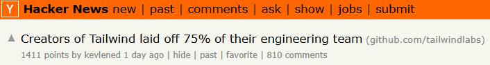 他表示,就在本周一,Tailwind正式裁掉了75%的工程团队。