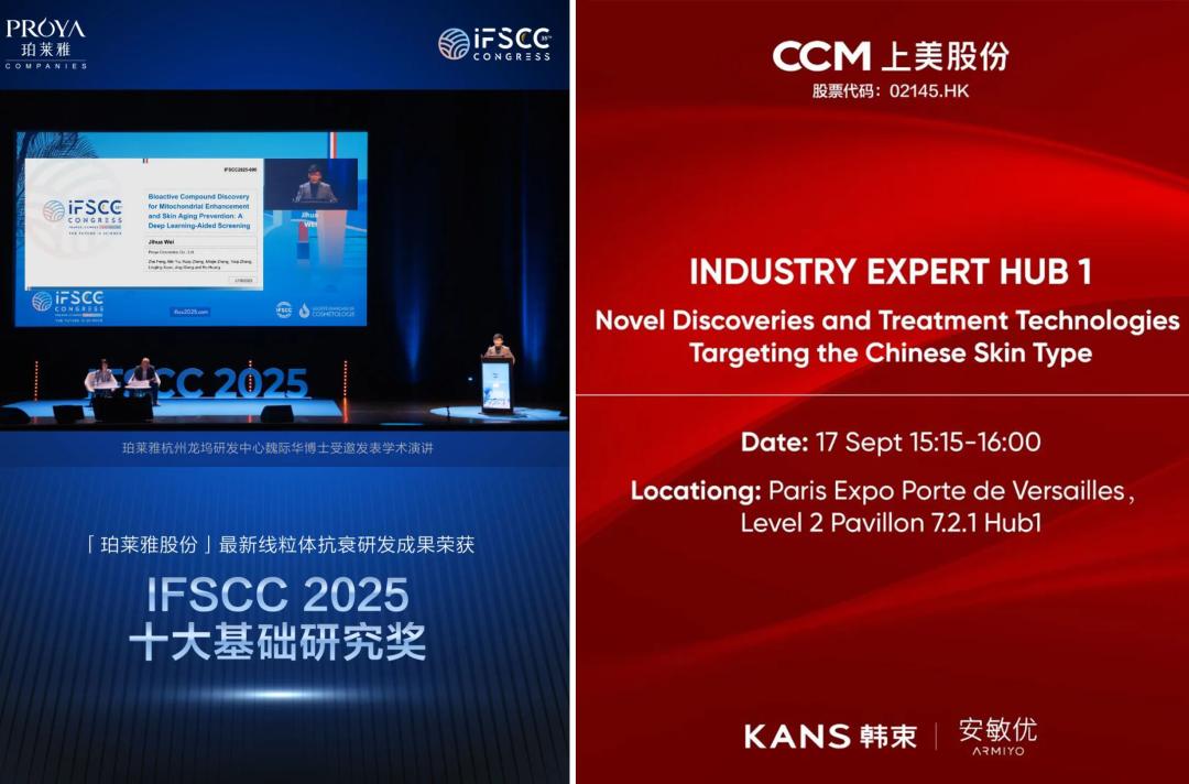 2025年9月,两家头部企业不约而同地完成立威动作,争夺全球科研体系的“官方认证”。珀莱雅获得国际化妆品科技联盟十大基础研究奖,成为该年度唯一获此奖项的中国化妆品企业。上美股份则登上欧洲皮肤病与性病学会年会,成为首个参会的中国美妆企业。