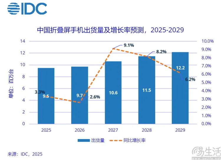 主要原因可能有三点。首先是2025年,在全球手机市场整体出货量下滑的背景下,折叠屏依然取得了6%的增长,但这一增长速度已然比两年前缩水了超过60%。