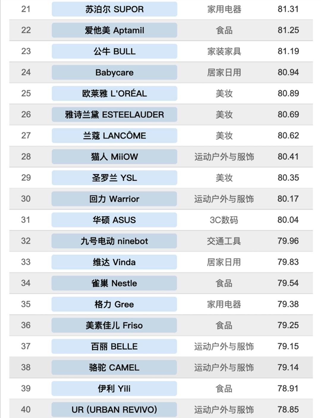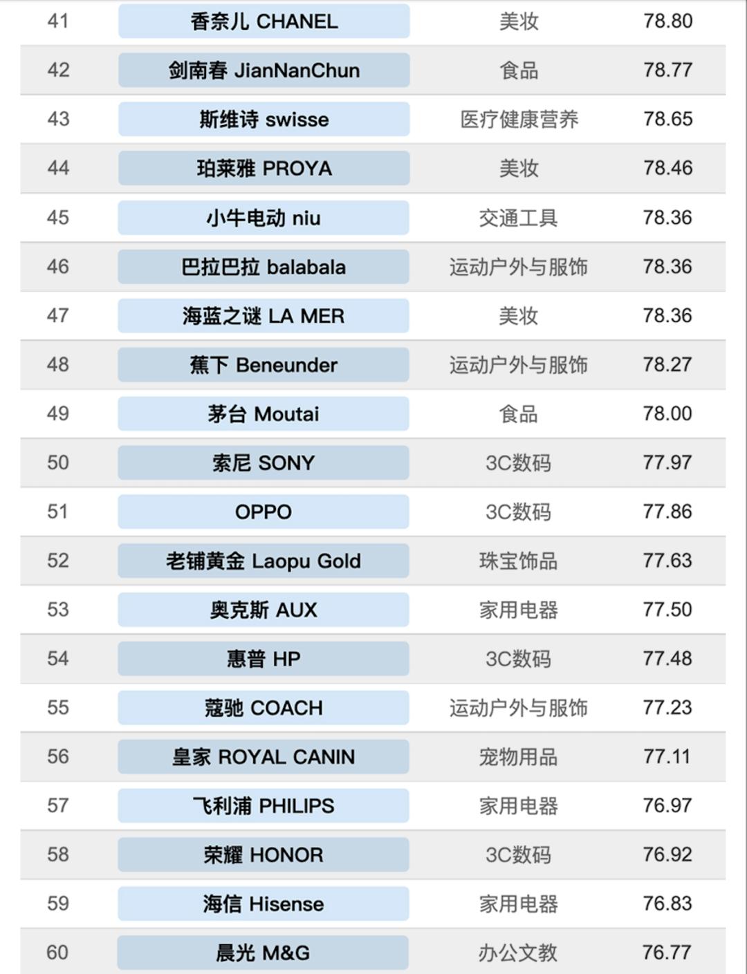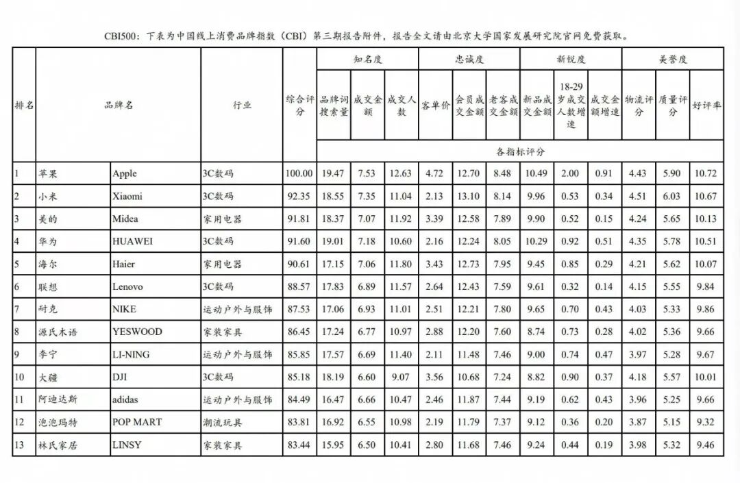 值得一提的是,研究团队还组决定把每季度品牌评分的前500名和它们的评分公布,也就是自然形成了线上品牌“500强”。