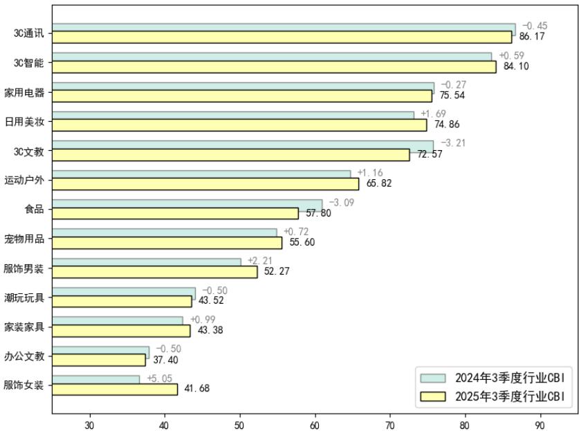 报告中一个有趣的对比:与上年同期(2024年Q3)相比,指数仍是增长的;但与本年上一季度(2025年Q2)相比,指数则有所回落。这种“环比下降、同比上升”的态势,恰恰精准反映了中国电商市场的季节性规律——消费者习惯于在二、四季度的大促期集中购买高价值、高品牌的商品,从而使得这两个季度的CBI指数天然偏高。
