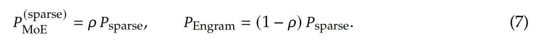 有限约束下的分配:在总参数量和训练计算量固定(即等参数、等 FLOPs)的情况下,应该如何在 MoE 专家与 Engram 嵌入之间划分稀疏容量?