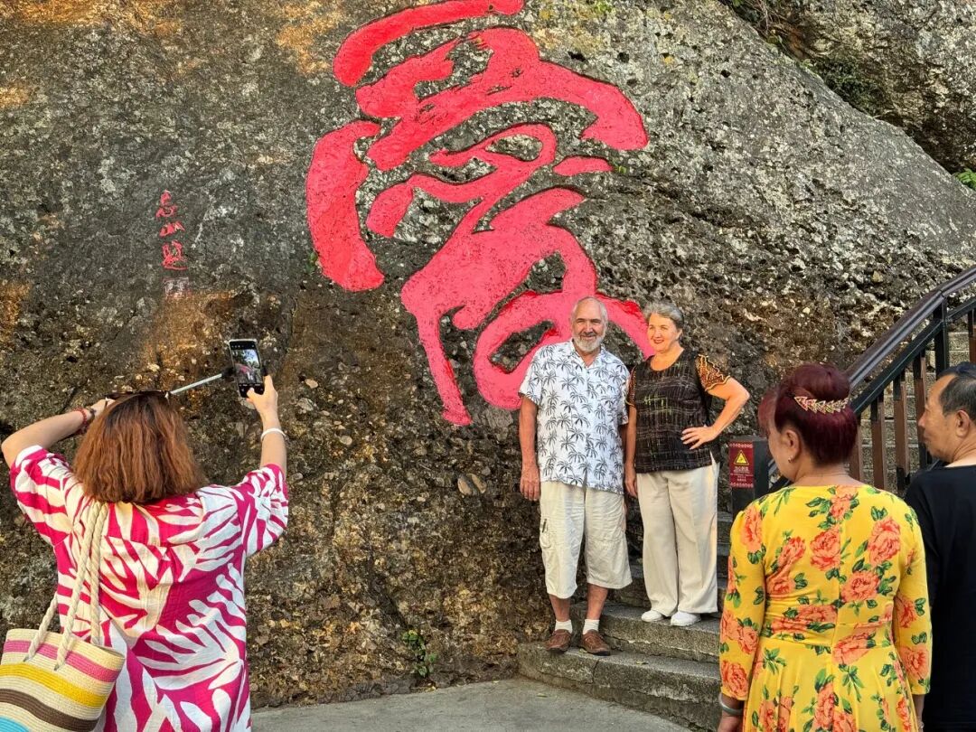 △三亚鹿回头“爱”字石刻前,国内游人正帮外国夫妻定格温情瞬间。(图/视觉中国)