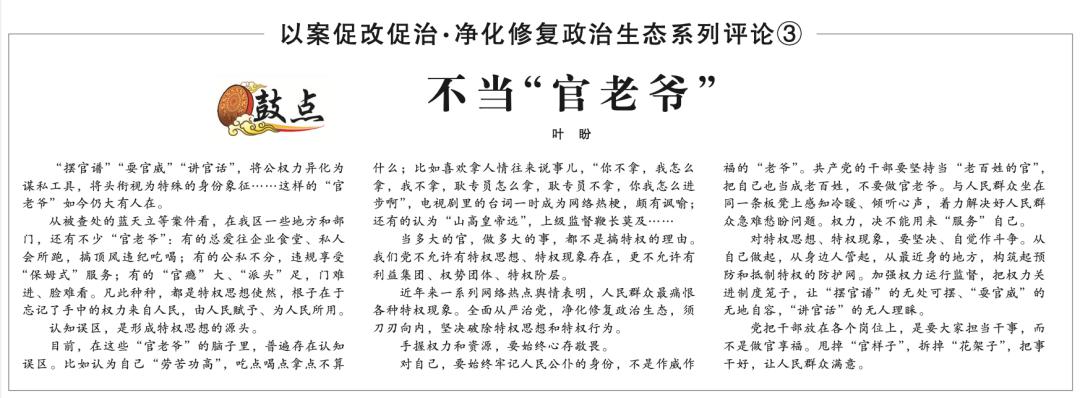 《广西日报》连日来也在头版刊发系列文章,直言不当“官老爷”、不做“老好人”。