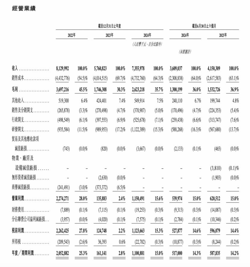 业绩方面,2023年、2024年、2025年前6个月,豪威集团营收分别为209.84亿元、257.07亿元和139.44亿元。相应的净利润分别为5.44亿元、32.79亿元和20.20亿元。