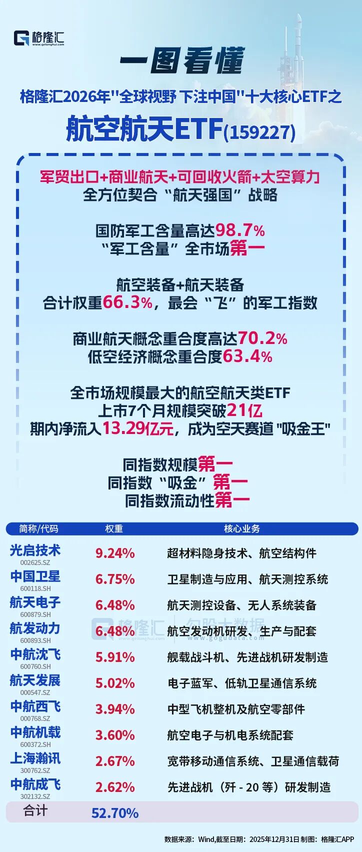基于这些逻辑,航空航天ETF(159227)入选了2026年格隆汇“全球视野 下注中国”十大核心ETF。