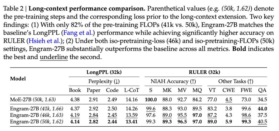 回到 V4 的爆料,The Information 提到新模型在「长代码处理」和「逻辑条理性」有质的飞跃。有趣的是,Engram 论文里的实验数据印证了这个说法。