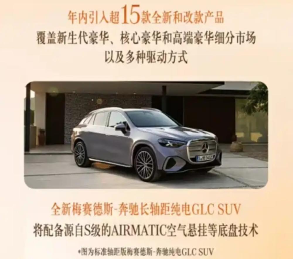 奔驰也拿出海量的新品矩阵,将在年内引入全新奔驰GLC长轴距版纯电版车型、奔驰GLE长轴距版以及中期改款奔驰S级等超15款全新和改款车型。