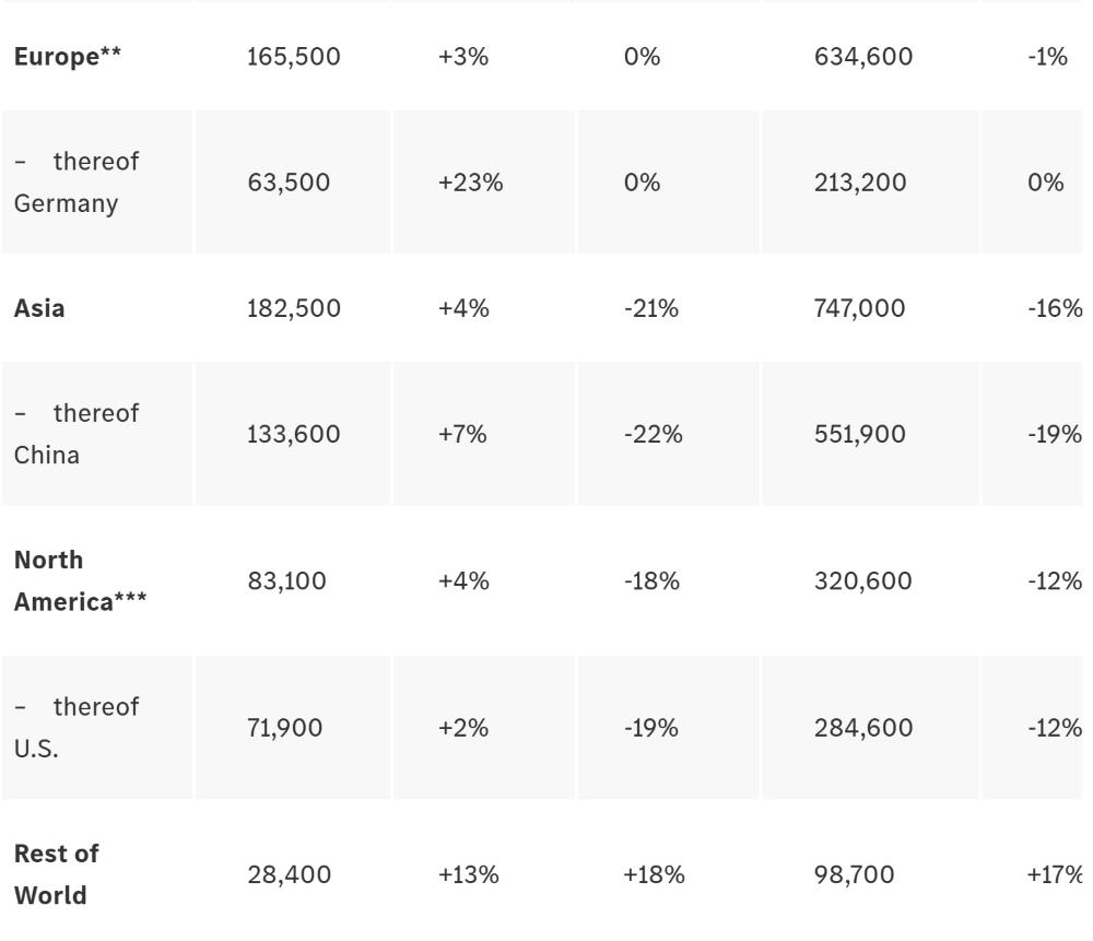 具体到不同地区来看,宝马集团给出了宝马和MINI这两个主要品牌在不同地区/市场的销量,分为欧洲、亚洲和美洲三大地区。