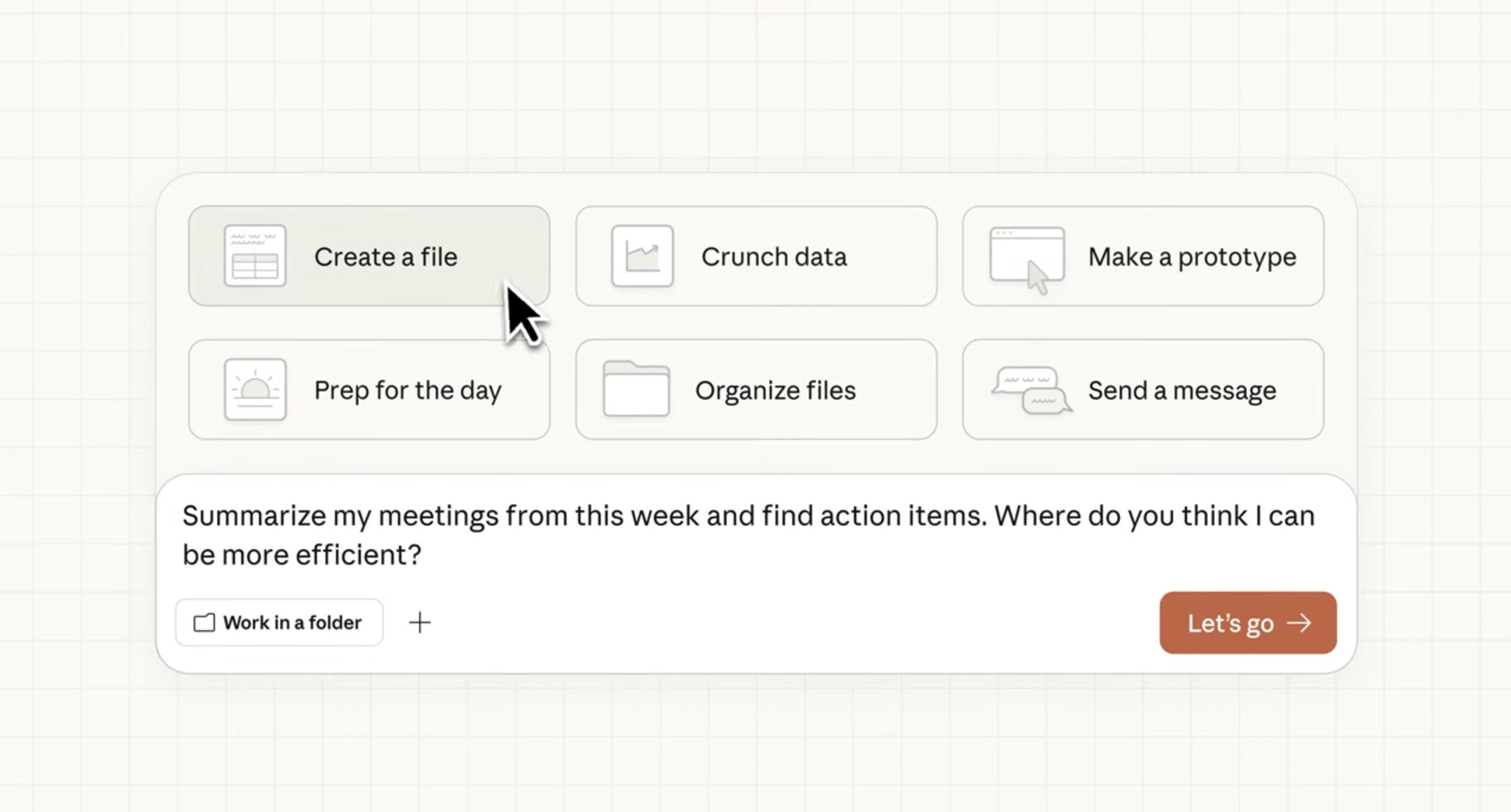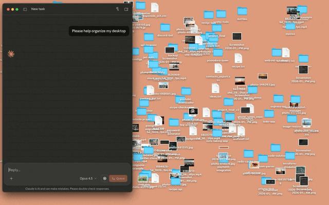 有意思的是,Claude Cowork 也支持平时不太起眼但很重要的「文件管理」。官方演示中就展示了一个例子,比如将「桌面」设为指定文件夹后,直接可以让 AI 梳理桌面凌乱的文件。