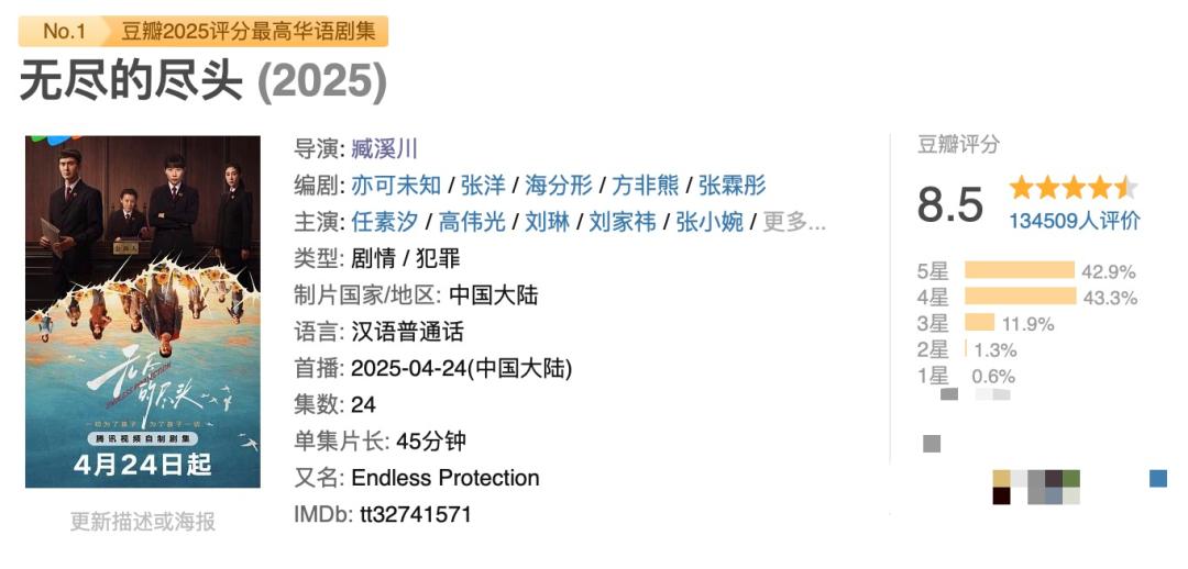 在罪案剧这个大方向里,《无尽的尽头》作为首部聚焦未成年法检题材的剧集,开辟全新领域,实现数据与口碑双逆袭;《棋士》则大胆采用「首集揭晓反派」的生活流叙事,为悬疑类型提供了反套路样本。