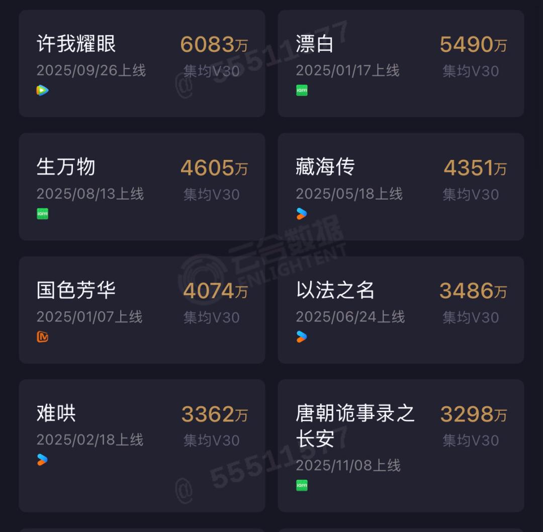 从云合数据来看,2025年是三年来国剧表现最差的一年。