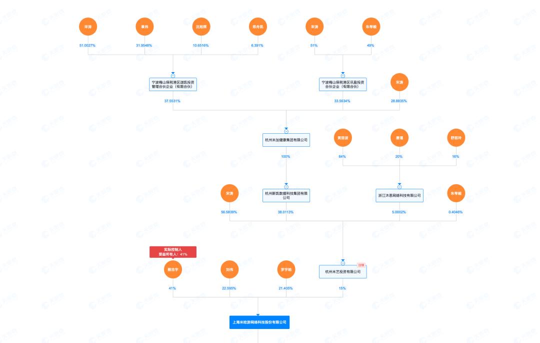 而在经历多次股权交易后,米哈游的股东也由斯凯网络变成了杭州米艺投资有限公司(下称:米艺投资),但其控制人还是宋涛,最终受益股份高达12.2025%。