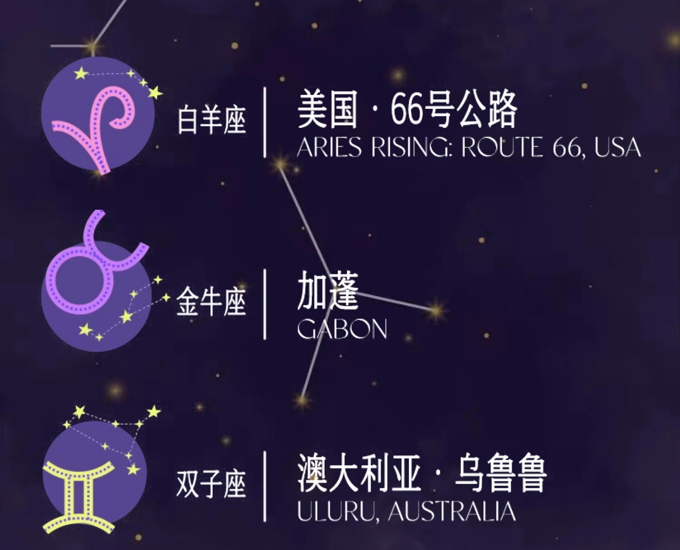 我们当然不缺好点子,但有些目的地显然比其他的更适合某些旅行者,而原因并不仅仅是只去探究你到底热爱哪片海滩、是否注定要去探索新的山地,或者你是否为一位因美食启发、随时准备奔赴哪家餐厅的旅行者;我们说的是一种更私人、更贴近内心的东西:你的占星星盘。