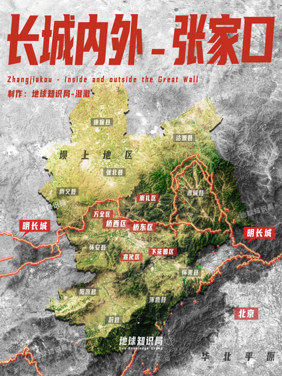 相比承德而言,张家口的地理情况比较特殊。它虽然与承德一样在清朝时期属于直隶,民国时期划出,并成为察哈尔省的省会。