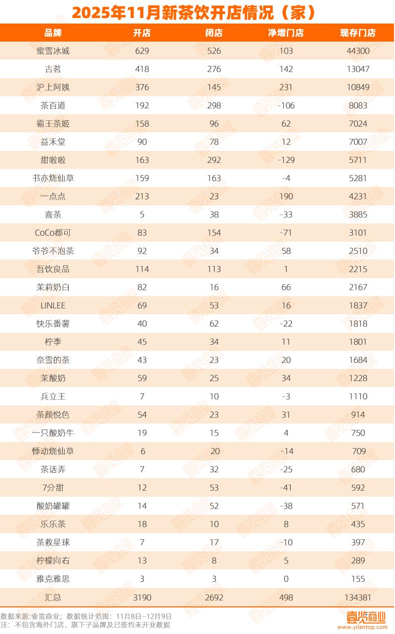 相比同期霸王茶姬超7000家、茉莉奶白超2100家、爷爷不泡茶超2500家的全国门店网络,茶颜悦色的布局仍显集中且数量较少。