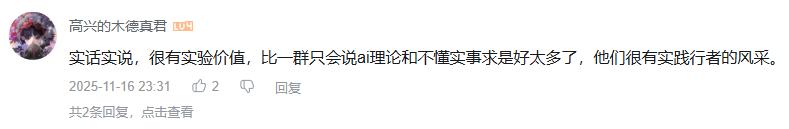 不过也有很多观众认为这是一部“技术探索大于内容本身”,是一个具有实验价值的事情。毕竟在AI大时代里面,总需要有一群人去尝试和探索这样的事情。