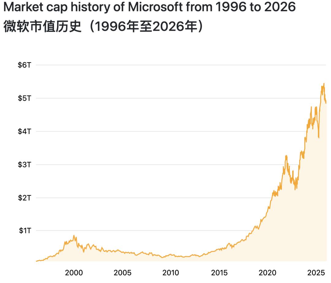 相比之下,纳德拉治下的微软正处于AI的超级周期,一骑绝尘。