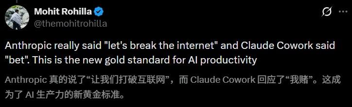 网友们纷纷直言:Claude Cowork,才是AI生产力的全新黄金标准!