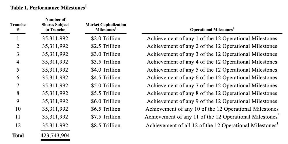单纯市值增长不足以触发奖励,马斯克每一阶段薪酬的取得还需同步满足运营或财务指标。