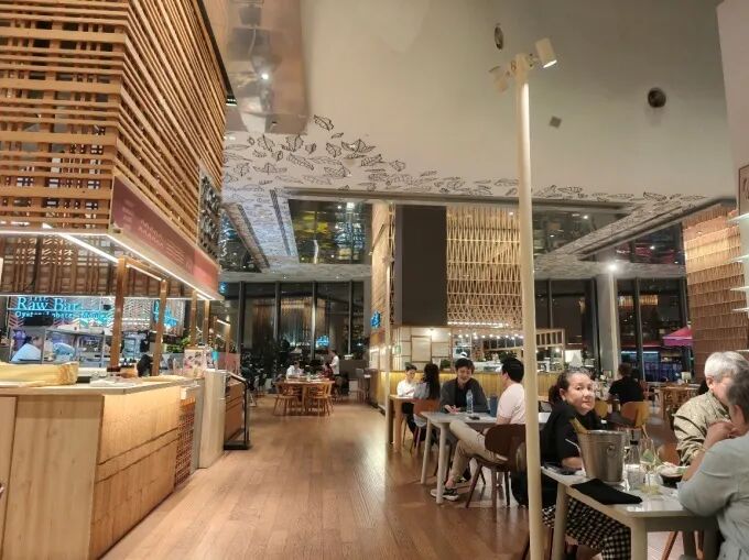 曼谷Central Embassy的“Open House”,它不仅仅是一个书店,也不是单纯的餐饮层。它是一个巨大的、挑高的双层空间,将书店、联合办公、儿童游乐、高端餐饮和艺术画廊完全融合在一起。你可以在餐厅里看书,也可以在书架旁喝咖啡。