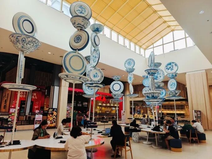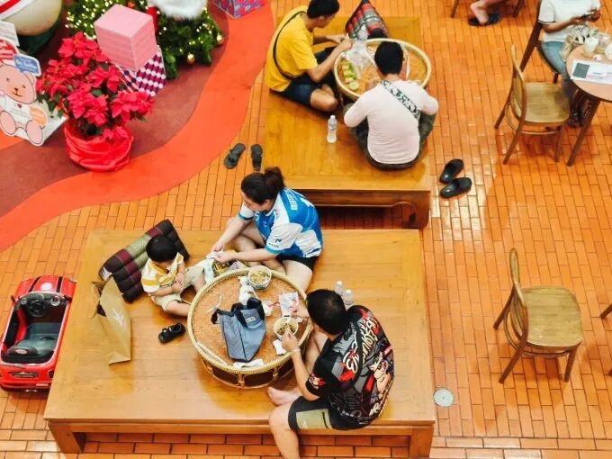 而泰国的Central Ayutthaya同样使用了大量的公共空间,作为周边居民的聚集之地,这种空间不仅形式多样,而且还可以办公、充电、饮食,换句话说,有点象一个逛街途中的临时“加油站”,最大的目的是延长顾客在商业内的停留时间。