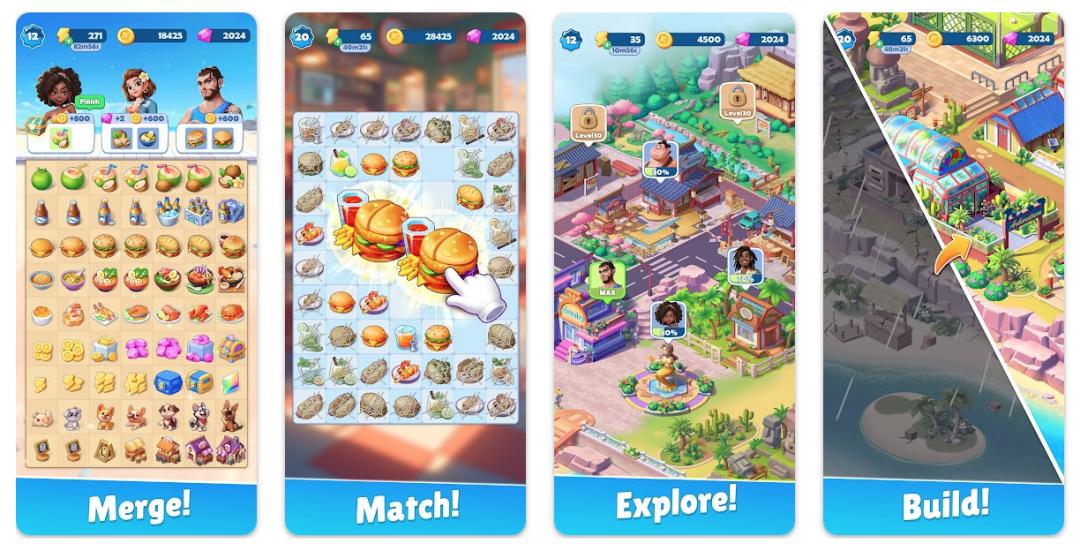 另一方面,点点互动旗下合成手游《Tasty Travels: Merge Game》围绕“环球美食之旅”题材,融合了合成玩法、美食烹饪与餐厅经营元素,深受海外女性玩家喜爱。