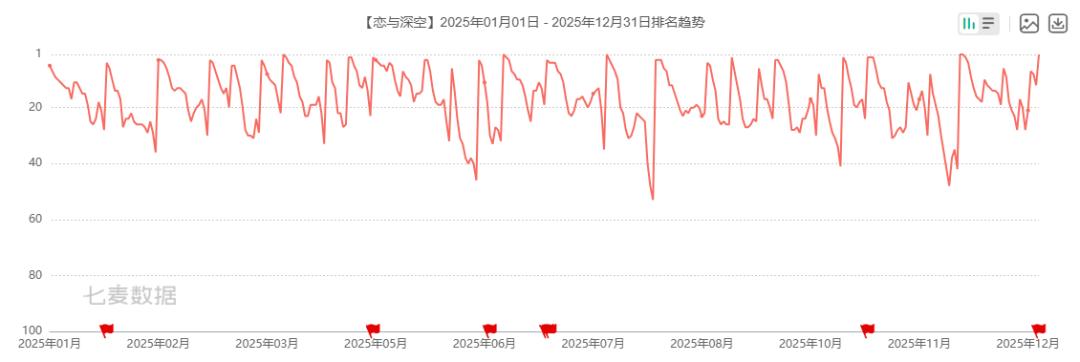 AppMagic数据显示,这款游戏在2025年有三个收入小高峰,分别是3月的祁煜、黎深、夏以昼限定五星思念卡池活动、7月的4.0版本「于深空见证的」以及12月的「银翼安魂地」系列活动、5.0版本「二周年盛典」。3月游戏全球收入超3900万美元,创下上线以来单月收入次高。
