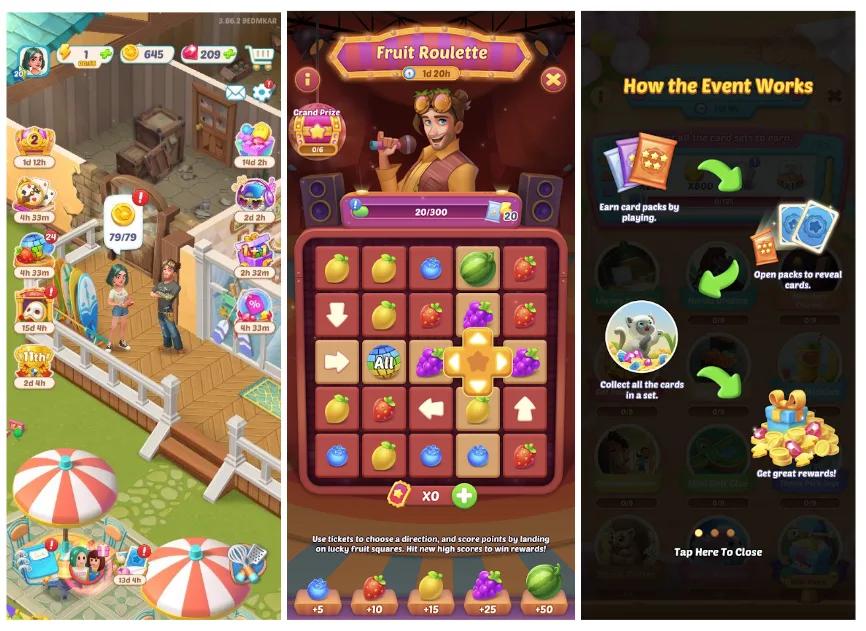 在《Seaside Escape》中,玩家不再是经营餐厅,而是重建一个被风暴破坏的海港小镇。与《Gossip Harbor》中的开放式装修不同,该游戏采取了序列式装修策略,玩家必须按照特定的顺序完成建筑和装修。这种设计减少了经营元素的复杂性,让玩家能够更专注于合成操作和故事的推进。
