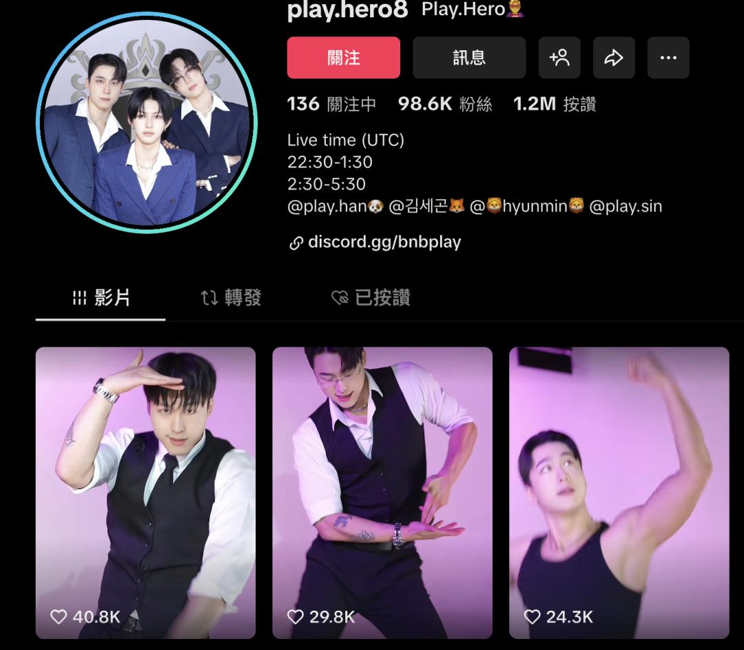 其中,去年1月成立的Play Hero已在TikTok拥有超过98万粉丝关注;而拥有超过50万粉丝的Playlist在去年韩国TIkTok年度颁奖礼获得“年度最佳现场音乐创作奖”。不过半年,BNB PLAY就在TikTok韩国部主办的“2025 年上半年 TikTok 直播经纪公司交流日”活动中,凭借断层直播入账,拿下团播销售额第一名表彰。