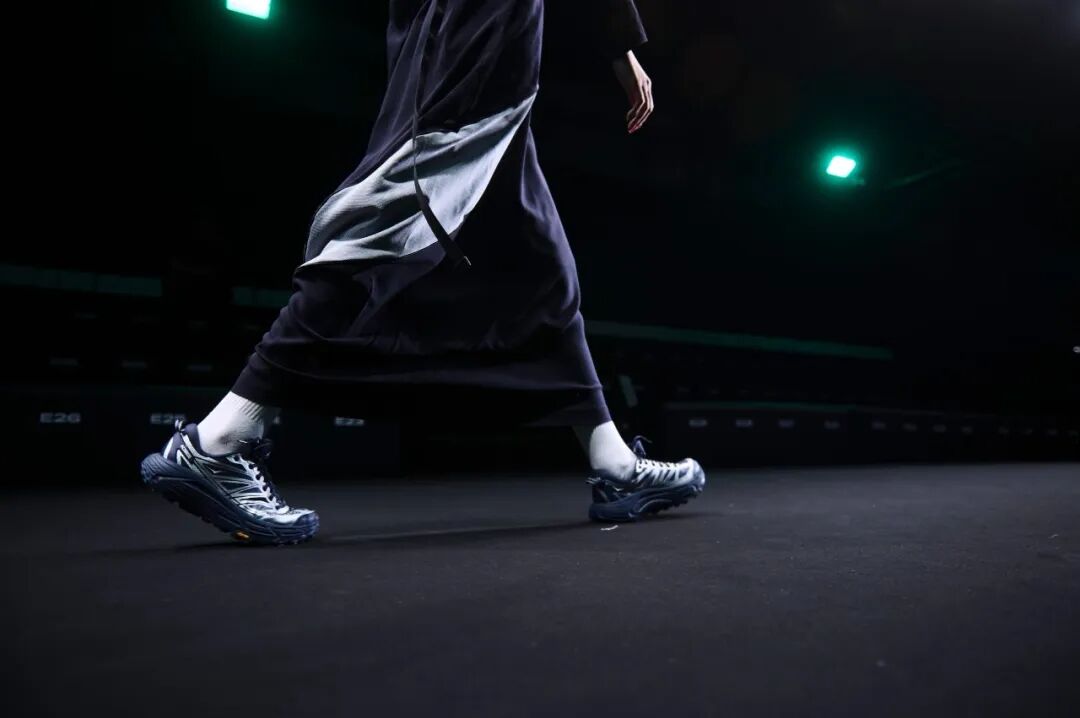 专注越野跑的HOKA选择重构时尚语言:在台北时装周 SS26 开幕秀《INTERLACE|交错场》中,携手 oqLiq 以 Mafate Lifestyle 等新品走秀,将越野精神延伸至都市机能场景。其在北京三里屯快闪店的MAFATE产品主题走秀,显示着品牌提升时尚属性的野心。