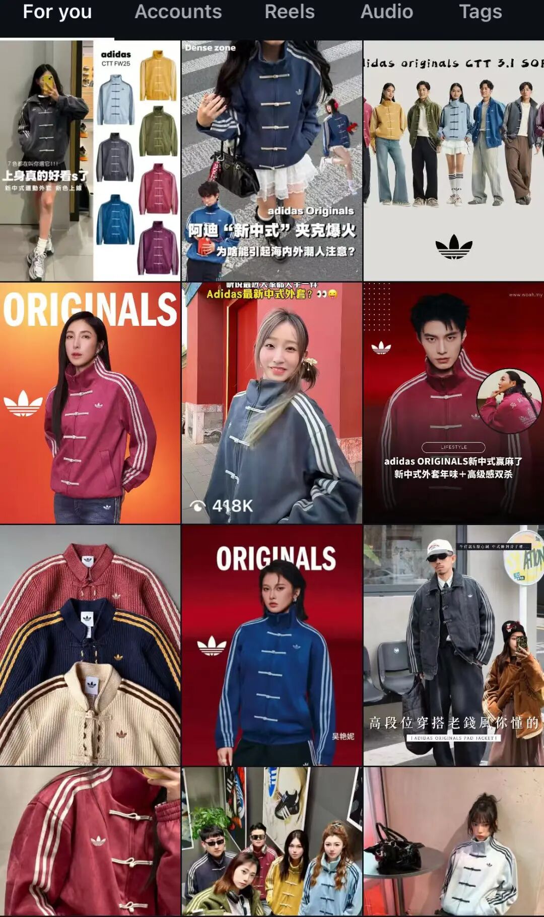 更为精彩的,是秀场上那件引发海外反向代购热潮的盘扣立领「新中式」外套,让adidas达成声量与销量的双赢。