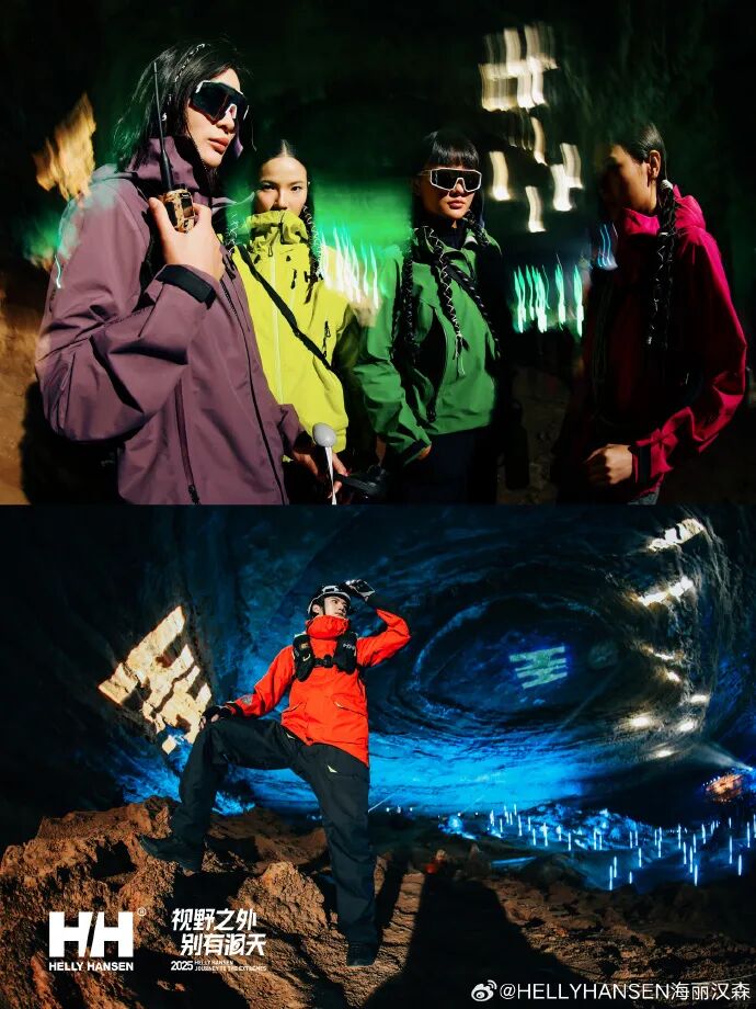 当上述品牌「进城」办秀,阔别秀场3年的HELLY HANSEN却把亚洲第一长洞「贵州双河洞」化为地心大秀 T 台。