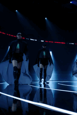 模特们脚踏 Air Max Muse,在秒表跳动的节奏中前行,红黑蓝光影扫过 Windrunner 夹克,解构式 Swoosh 胸衣将时尚语言转译为「新运动美学」。